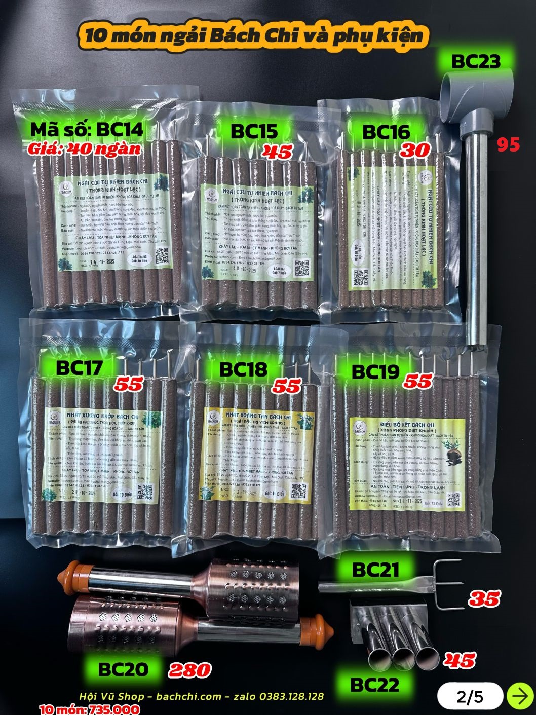 + Tất tật các sản phẩm điếu ngải cứu và phụ kiện dùng cho điếu ngải tự nhiên Bách Chi